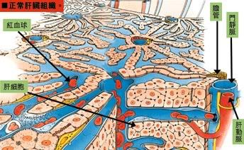 6.膽汁性肝硬化:肝細胞分泌膽汁,但肝內之膽汁通道受阻,淤積於肝內,造成肝細胞破壞,終至肝硬化。