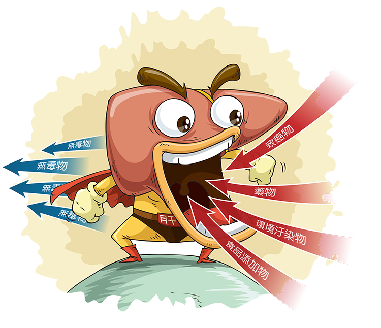 (二)肝臟的另一種解毒功能乃是將經由各種管道進入人體的有毒物質妥善處理並排出體外,例如:酒精、食物添加物、環境污染物等。處理的機制非常複雜,這也是肝臟在人體中無可取代的角色。